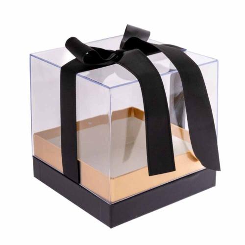 Dāvanu kaste 14cm kvadrātiska melna caursp.
