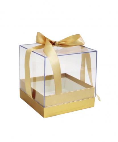 Dāvanu kaste 14cm kvadrātiska zelta caursp.