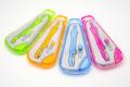 Šķēres griešanai no plastmasas ar apaļiem asmeņu galiem
