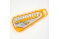 Komplekta ietilpst : 15cm lineāls, transportieris, trīstūris 45°, trīstūris 60°