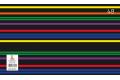 dzeltens:oranžs; rozā ; sarkans; salātzaļš; zaļš; debesu zils; tumši zils; brūns; melns